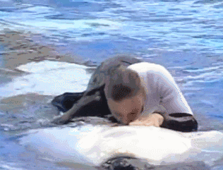 因為高強度的訓練和暗無天日的圈養,三頭虎鯨把資深馴獸師Dawn拖入水中。