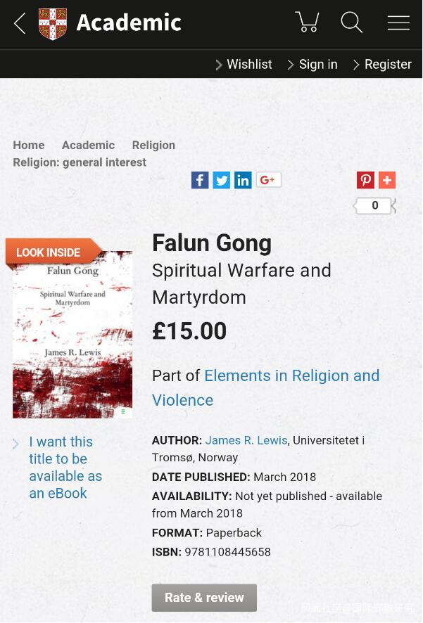 中國反邪教網訊(記者厲潔)2018年4月30日,《法輪功:精神戰與殉葬》平裝本在英國出版,該書是劍橋大學出版社《宗教與暴力》叢書的組成部分,電子版已於3月在線發售。《法輪功:精神戰與殉葬》約6萬字,共分6章,集中討論“法輪功”和暴力,關注李洪志的教義是如何促使修煉者“故意尋求”折磨及殉教。