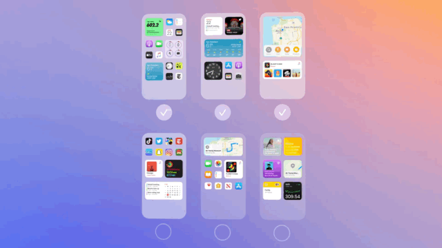 除了資源庫之外,主屏幕還支持添加小組件功能。以往只能呆在搜索頁的Widgets小組件十分“雞肋”,這次iOS 14把小組件分享到了主屏幕上,小組件既可以調整大小,也支持智能疊放,用户可以在同一個位置放置多個小組件並按需滑動調用。把這些靈活的小組件穿插在應用圖標中,可以讓主屏幕布局更加靈活。