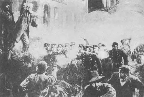 “在東方,一顆新星冉冉升起!在痛苦的掙扎中,新秩序從舊的秩序中降生。看哪!在東方,一個男嬰降生了!向前!同志們,齊向前!奔向俄羅斯的營火!迎接黎明!”