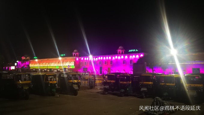 齋普爾 火車站的火車大廳很漂亮,個人感覺 齋普爾 車站應該是除了 孟買 中央車站外,最漂亮、乾淨的一個 印度 車站。站內素潔整齊,站外霓虹閃爍,彩燈的顏色以粉紅為主,讓車站融入粉色之城的大基調。