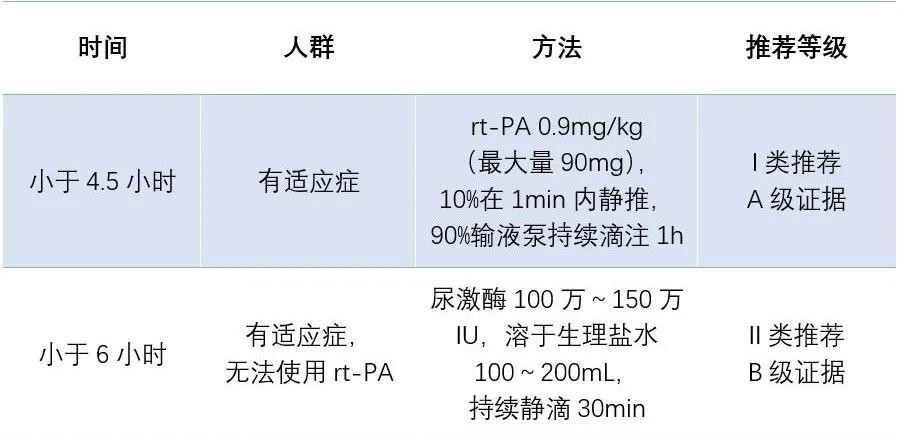 《中國急性缺血性腦卒中診治指南》(2018)中明確推薦,對缺血性腦卒中發病4.5小時內的患者,應按照適應證、禁忌證和相對禁忌證嚴格篩選患者,儘快靜脈給予溶栓治療。