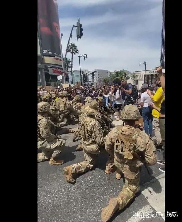 美國總統特朗普迅速調來國民警衞隊,然而國民警衞隊迅速下跪