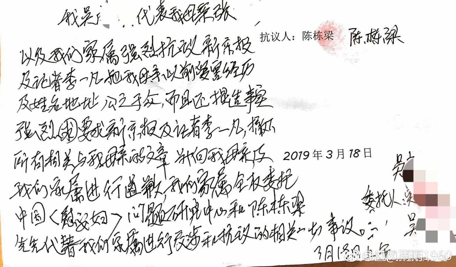 新京報採訪“慰安婦”直接暴露受訪對象姓名。他説得到家屬確認。但被家屬直接抗議:
