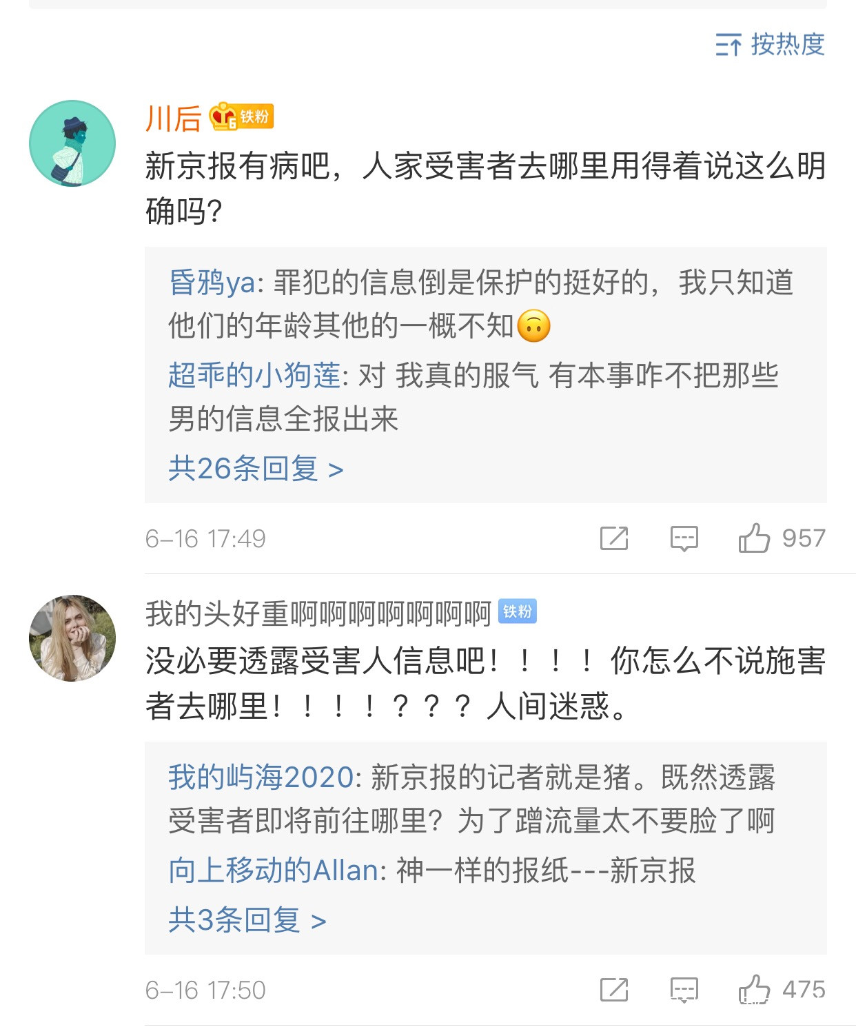 而在報道後續的時候,又把受害者女生的後續動向地點給報道出來了。受害者女生此時最需要的就是隱私,她需要得到保護。網友覺得非常不妥: