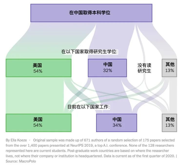 根據這項研究,大多數頂尖的AI人才都擁有博士學位。其中,有88%的AI的中國學生擁有博士學位,在美完成學業後留在美國工作。