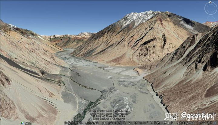 什約克河谷,右側為加勒萬河口,左側可見印方營地