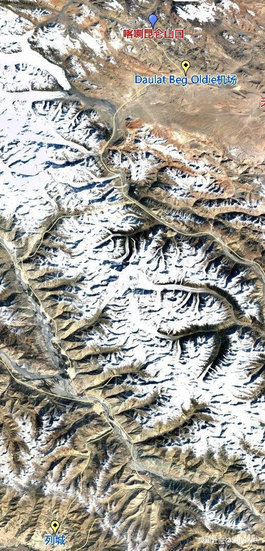 需要指出的是:從列城到喀喇崑崙山口並不是只有一條路的,而是東西兩條線。
