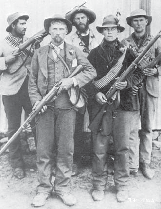 一支布爾人突擊隊,手持毛瑟M1895和Lee-Metford步槍混合使用。這些是當時最好的步槍,布爾人是使用這些步槍的專家。