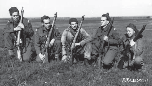 緬甸日軍據點附近的這隊英國步兵使用了整整一代輕武器。第二位士兵(從前往後算)拿着一把老式的SMLE,下一位是布倫機槍,第三位和第四位是恩菲爾德4號步槍;第五位蹲着的人拿着眾多斯登變型槍中的一種。