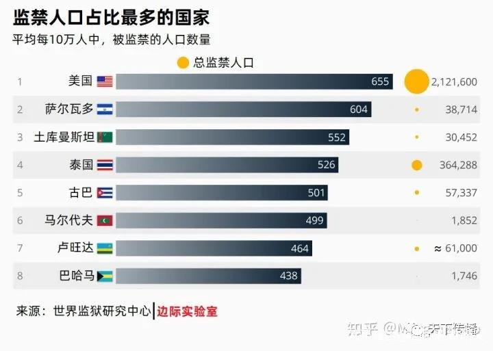美國司法部、國際組織的統計,美國關押了全世界監獄人口的四分之一,而美國人口只佔了全球的4%。