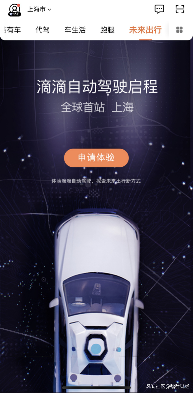 作為中國最大的出行服務商,滴滴在自動駕駛方面同樣不甘落後。今年6月27日,滴滴自動駕駛服務正式上線,開始在上海接受公眾體驗報名。