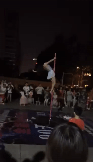 據當地媒體報道,學校保安表示,這是一舞蹈機構來招生,當時來了八九個人,跳了健身操,還跳了鋼管舞,“喊他們走,沒喊得走。晚上六點多,跳了半個小時。”