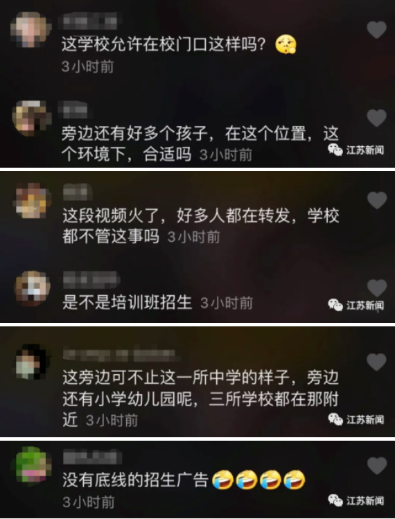 6月26日,網傳一段視頻稱,25日晚,江蘇省南通市港閘區北城中學前有舞蹈機構來招生,女子大跳鋼管舞,引眾人圍觀。有網友評論稱,“辣眼睛”“招生沒有底線”。