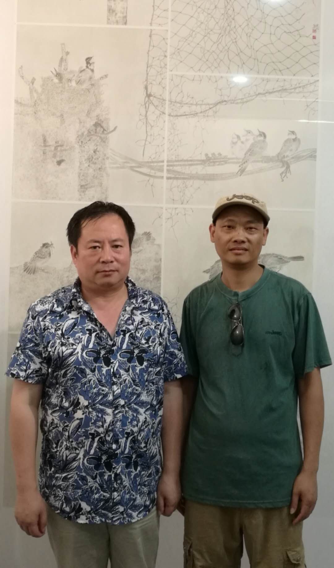“初生牛犢不怕虎”。兩年後,也就是2000年,楊建兵作出一個驚人之舉:在安福縣博物館舉辦了人生第一次小型個人畫展。作為一個窮書生,為了節約開支,整個畫展從籌劃到最後的收尾,都是他自己一個人親力親為,六十多張作品都是自己在彭坊學校教學樓二樓的一間教室裏加班加點熬夜完成裝裱。當時沒有微信、抖音等宣傳手段。畫展想讓人知道就是靠牆頭廣′告,楊建兵自己手繪了十幾張畫展廣告,和幾個朋友跑遍安福縣的大街小巷,把一張張粉紅色的畫展廣告紙貼在各個顯眼的地方。這次畫展很成功,觀眾絡繹不絕,受到同行們的一致好評和肯定,取得了良好的社會影響,縣裏電視台也作了相關報道。這次畫展的效果超出了他的心裏預期。一顆畫界星星也開始冉冉升起!