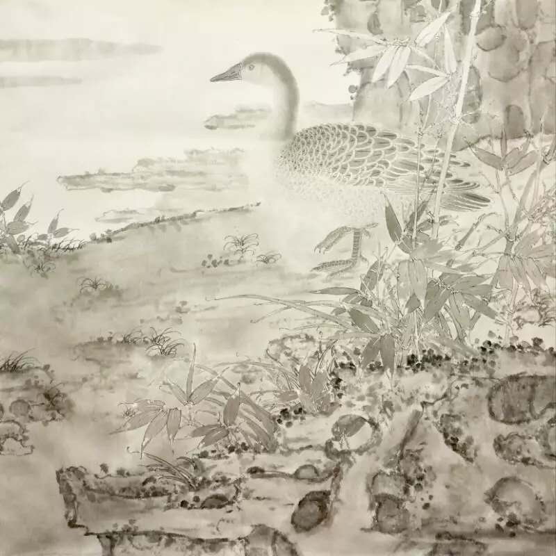 第二次獲獎的作品題材上略有變化,雛鳥換成了魚。孟子説,“數罟不入洿池,魚鱉不可勝食也”。而在環保意識欠缺的當下,人們早已忘記了古人的告誡,對自然毫無節制地索取,不給池魚繁衍生息的機會。楊建兵將這一現象表現出來。這幅作品成功獲得“工.在當代一一2016全國第十屆工筆畫作品展”入會資格(最高獎),並在全國最高美術殿堂——中國美術館展出。作品展開幕式當天名家雲集。也就是在那天,他的作品受到了中國美協副主席何家英老師的讚譽和肯定。當時,何家英老師説:“這類題材的作品在這次美展中總共有四五幅,但唯一獲獎的是他這一張″。何家英老師説這張作品他印象深刻,所表現用線非常生動,骨法用筆,線條繁而有序,繪畫元素到位,點線面安排恰到好處,作品細節的處理有依可循且來源於生活。隨後,何家英老師還親切地問起他的籍貫,與他拉起了家常。並囑咐隨從人員留下他的聯繫方式。何家英老師這種大家風範與為人格局,着實讓他感動與欽佩,永銘在心!
