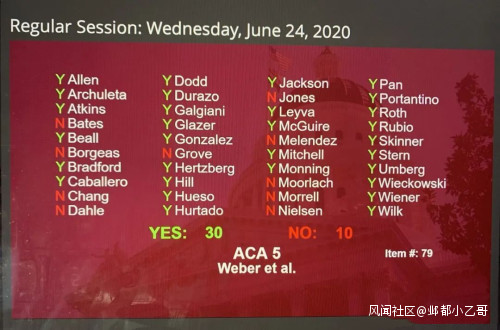 加州參議院ACA 5投票結果 直播視頻截圖 下同