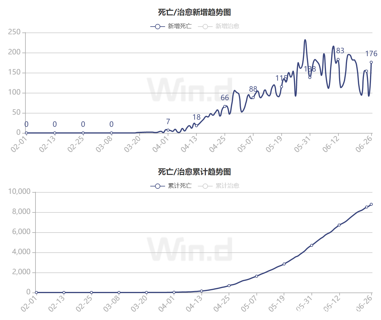 **秘魯(快速增長):**新增3762例;累計272364例,環比增加1.4%;新增病亡178例;累計8939例,病亡率3.3%,緩慢上升。