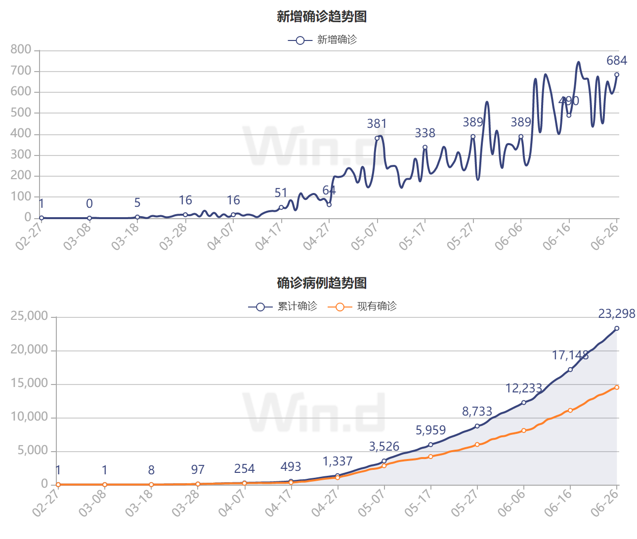 日本(基本控制):新增確診病例105例,有所反彈,為5月9****日以來最高;累計確診19030例,環比增加0.55%;新增病亡0例,;累計病亡983例;病亡率為5.2%。