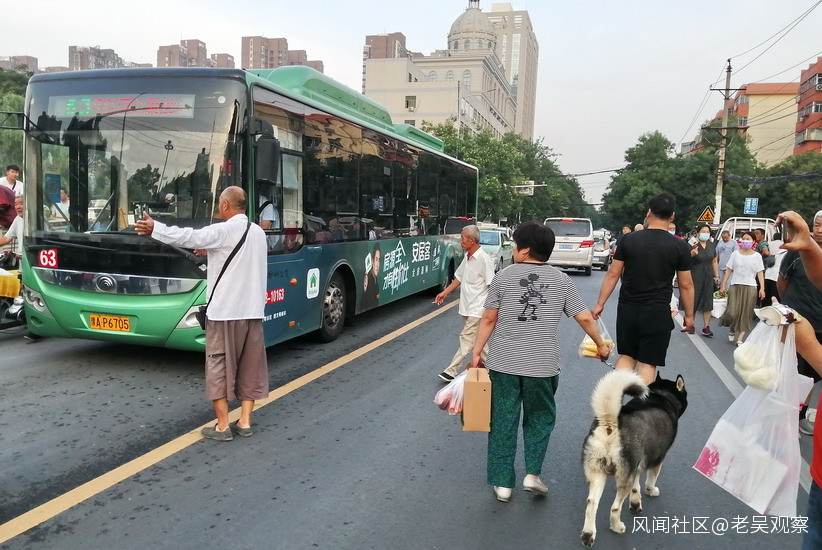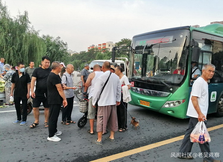 今天早市上,筆者親眼目堵了這些一件事,一輛公交車沿淮河路從西往車行駛,當公交車慢行通過早市中間馬路時,一老者騎着輕便電動車橫穿馬路中,不小心衣服與公交車相擦,本來是橫穿馬路老者的過錯,而這位老者把電動車往公交車頭一橫,跑到公交車駕駛座窗前,手指着年輕公交車司機破口大罵。