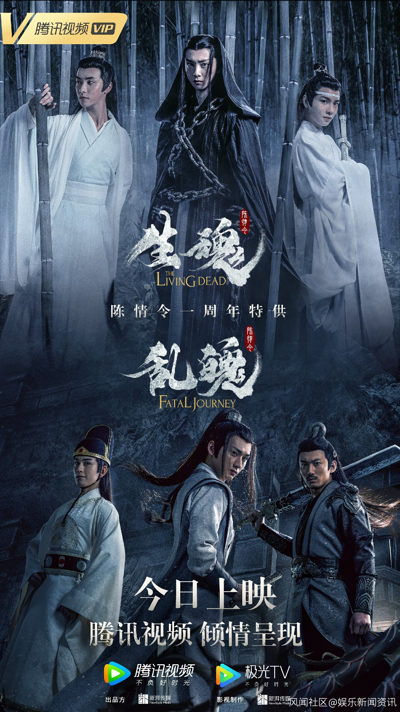 今日,由新湃傳媒出品製作,楊夏擔任總製片人,裘仲維執導的《陳情令》系列番外電影《生魂》《亂魄》同時曝光最新海報,宣佈在騰訊視頻正式上線。正值《陳情令》開播一週年之際上線系列番外電影,以此作為禮物答謝所有支持《陳情令》的粉絲。