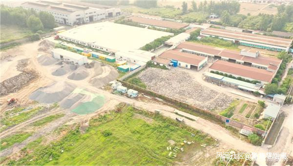 在橫發路揚州寶金工具有限公司,已經停產的院子內堆放着大批待加工的水泥塊,院子北側深處的廠房裏也堆放着加工好的石子石粉。