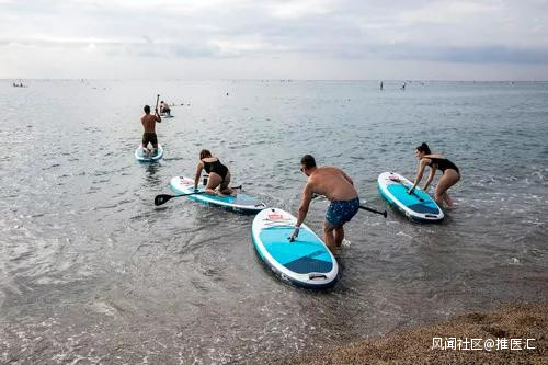 6月25日,在西班牙巴塞羅那的海岸,人們準備衝浪。新華社發(巴塞羅那市政廳供圖)