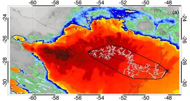 衞星照片:單次長度最長閃電2018年10月31日發生在巴西南部。(圖片來源:世界氣象組織網站)