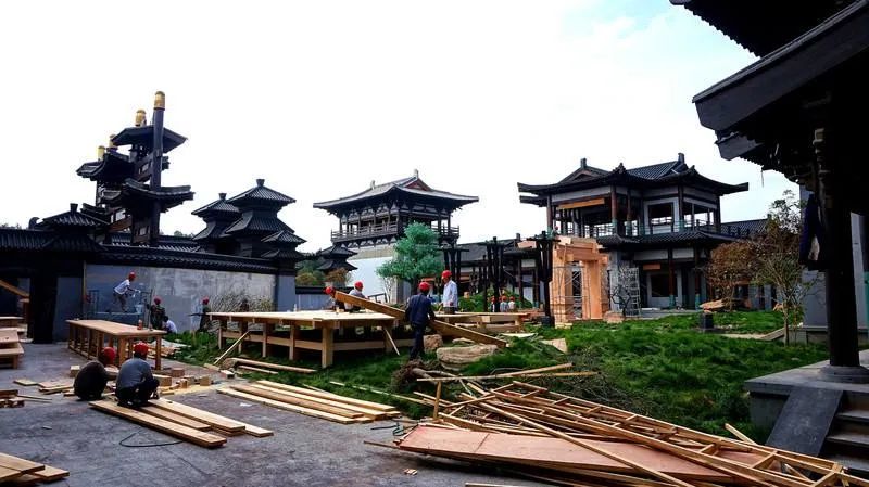 當時橫店已經造出了一些人工景點,比如封神演義宮、大智禪寺等等,但尚未成規模,且土味十足,名字也不倫不類,比如大智禪寺所在地被命名為“天堂村”。