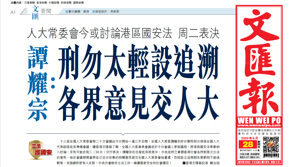 1.原文刊於2020年6月28日香港《文匯報》A1版,http://paper.wenweipo.com/2020/06/28/HK2006280001.htm。