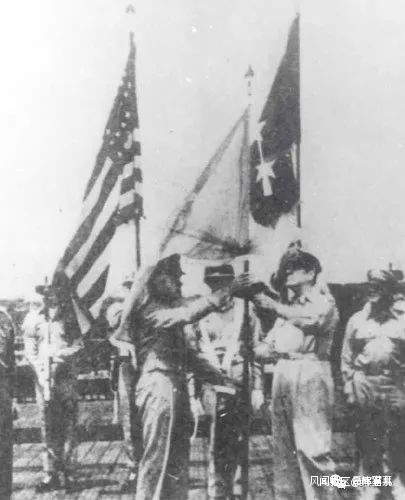 “聯合國軍”總司令麥克阿瑟接受聯合國旗幟