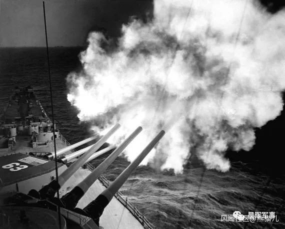1950年12月26日,美國“密蘇里”號戰列艦向朝鮮東部港市興南發射炮彈。(美國海軍)