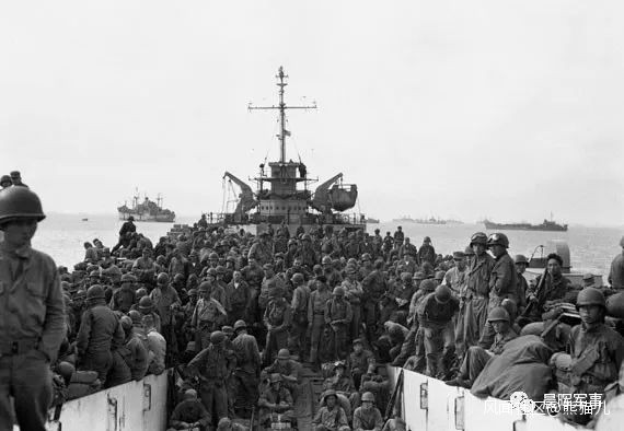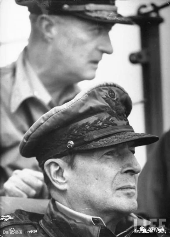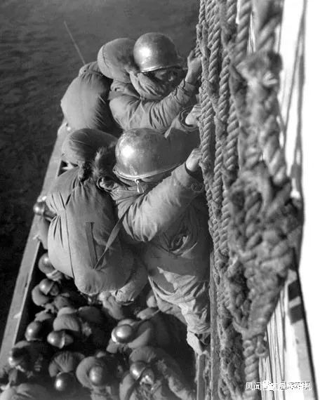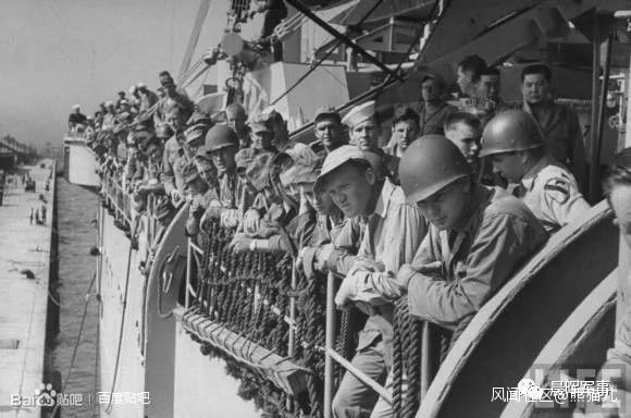 1950年9月,仁川。麥克阿瑟將軍登上旗艦麥金利山號,親自督促他的X部隊(2團第1陸戰師)登陸作戰。.