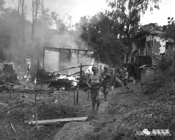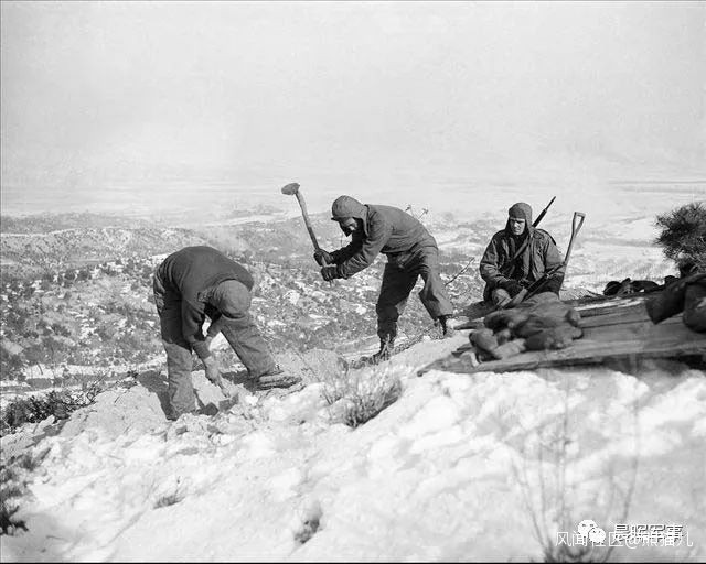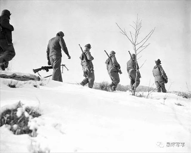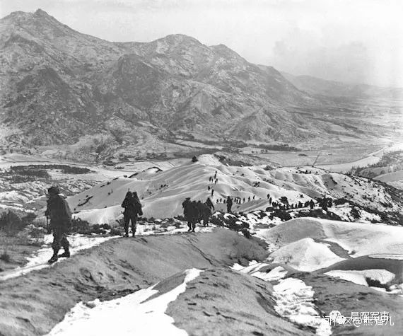 1950年12月26日,美軍海軍陸戰隊士兵在有效打擊我方空中供給之後繼續前進。(攝影:McDonald)