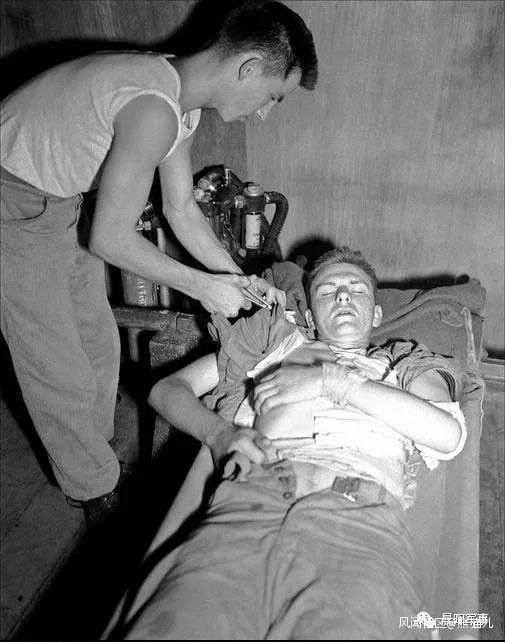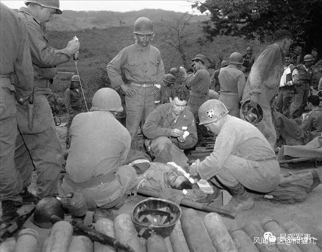 1951年5月1日,漢城,美國坦克兵對在戰場上受傷的士兵進行第一時間的幫助。攝影Charles Fabiszak