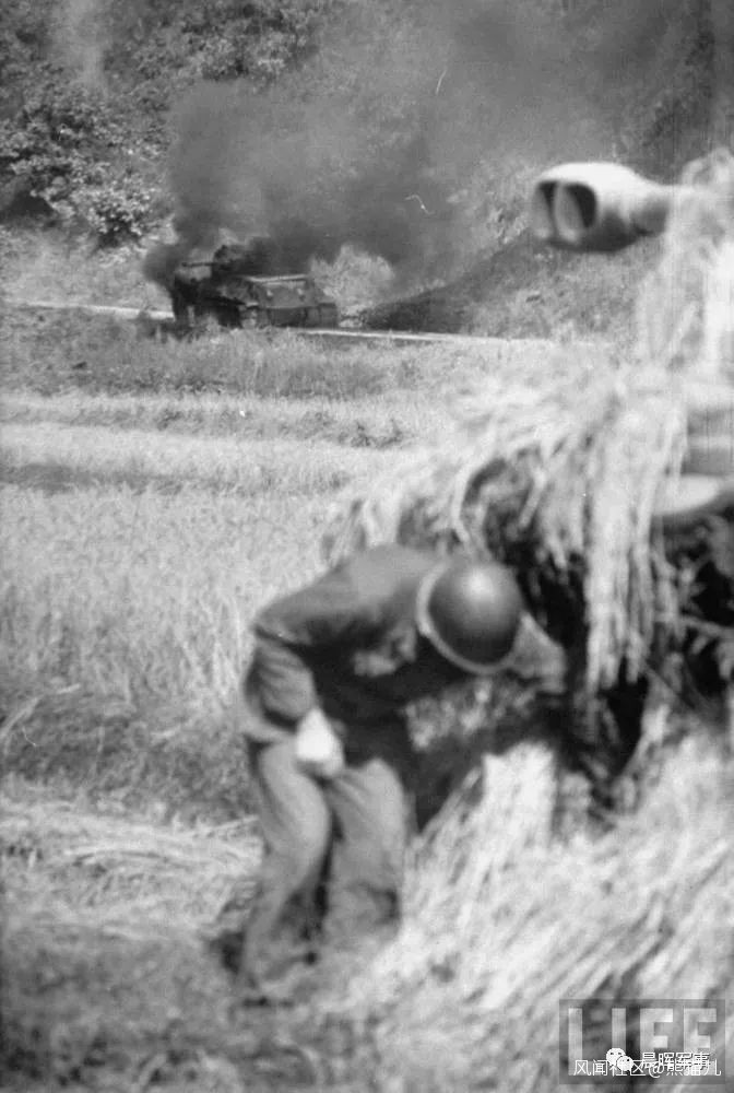 1950年10月,平壤。美軍騎兵第一師在用稻草偽裝他的坦克。