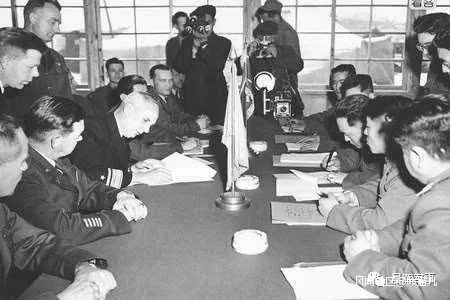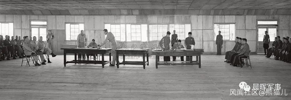 朝鮮戰爭談判現場,中美兩軍代表簽字。