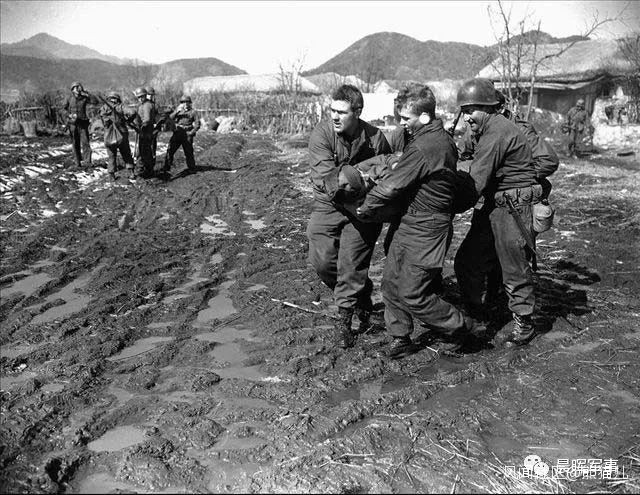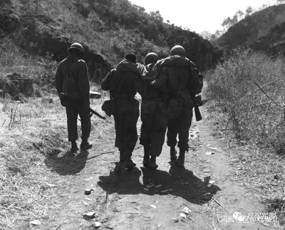 1951年4月22日,1951年4月22日,兩名美軍第24團士兵攙扶受傷的同伴撤離。(攝影:Tom Nebbia)