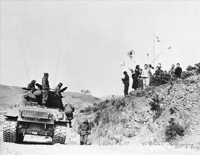 返回漢城的第八軍坦克和吉普車車隊;以及逃難的北朝鮮民眾。