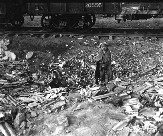 1950年12月17日,一個無家可歸的小男孩和他的姐姐在鐵路線旁,搜尋可以吃的食物和可以取暖的地方。(攝影Fulton)