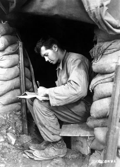 1951年11月15日,美軍第5期兵團一等兵德懷特在前線寫家信。攝影 ames L. Chancellor。