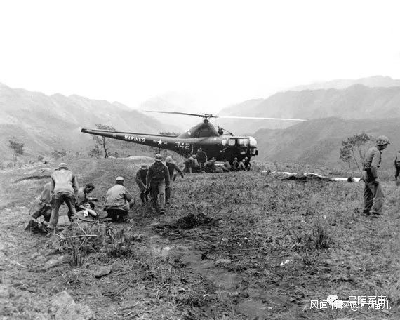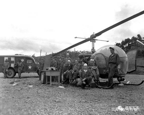 1951年5月23日,受傷的美軍士兵通過直升機轉移到離戰場最近的戰時醫院進行救治。攝影McMasters