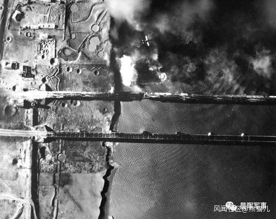 1950年11月15日,美國海軍AD-3俯衝轟炸機空投2000磅航空炸彈,轟炸鴨綠江大橋朝鮮一側。(美國海軍)