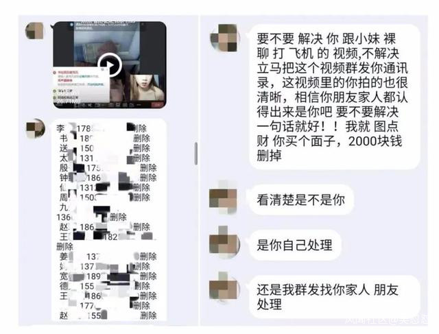 接下來就是把剛剛錄下的不雅視頻,加上敲詐團伙們通過病毒程序軟件從你手機上獲得的用户通訊錄,一併發過去並告訴你:給錢,否則發給通訊錄上認識的人們。