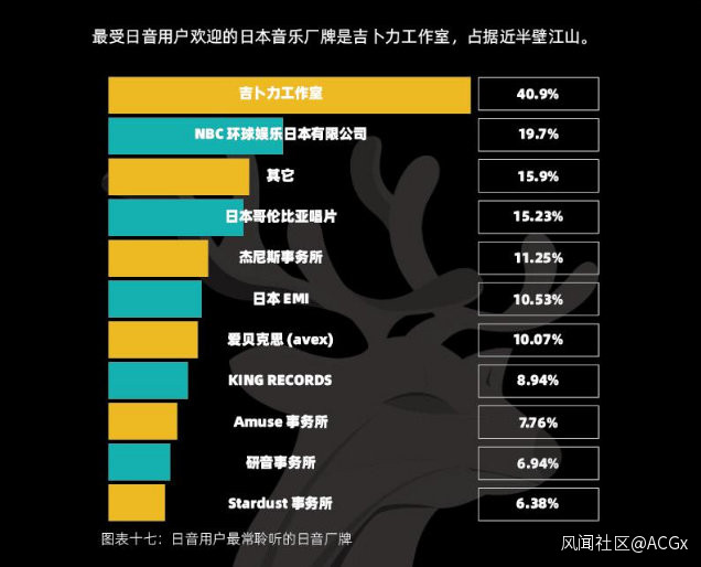 近日,音樂娛樂行業研究機構小鹿角智庫發佈《日本音樂在華推廣現狀洞察報告》,這份基於10萬餘份有效樣本的首份中國日音報告顯示,最受日本音樂愛好者歡迎的音樂風格為動漫音樂,最受歡迎的日音廠牌為吉卜力工作室,支持率達40.9%。