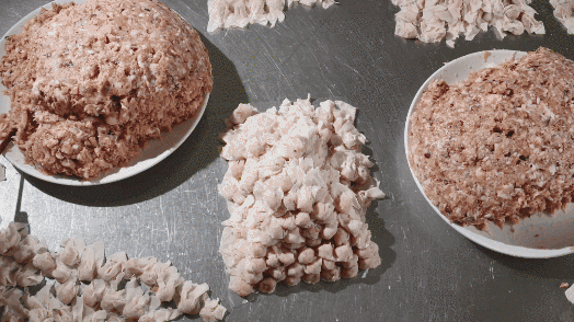 東莞臘腸除了常見的長條形,還有胖乎乎的長圓形,紅白相間,看上去有點小巧的萌;