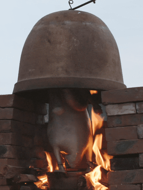 當然,不是真的樓,以磚砌烤爐,上扣一口聚熱的鐘形罩,在裏面掛鵝而烤,被稱作“鵝樓”。