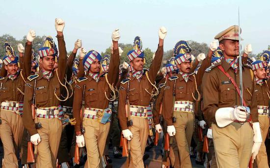 手持INSAS參加閲兵的印度中央後備警察部隊