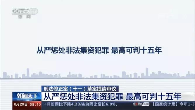 刑法修正案(十一)草案提請審議 網絡非法集資最高刑期擬提至15年_風聞