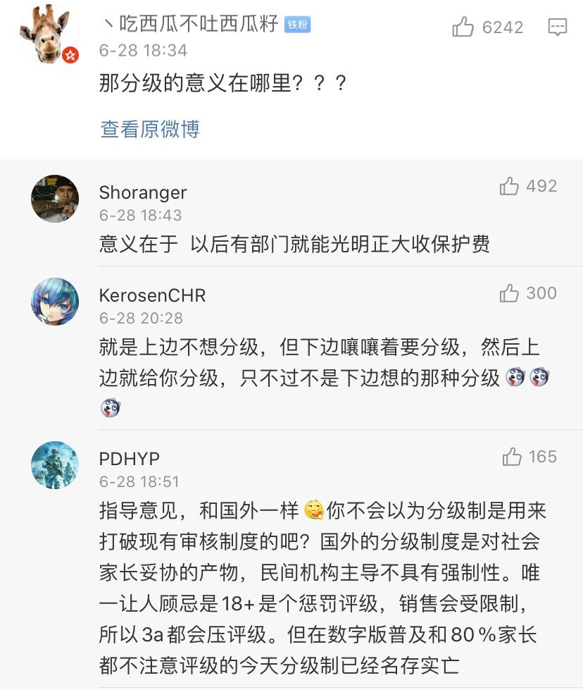 標題寫着“遊戲分級確定”外加人民網的出處,讓很多網友認為這是已經確定實施的指令,都顯得十分激動: